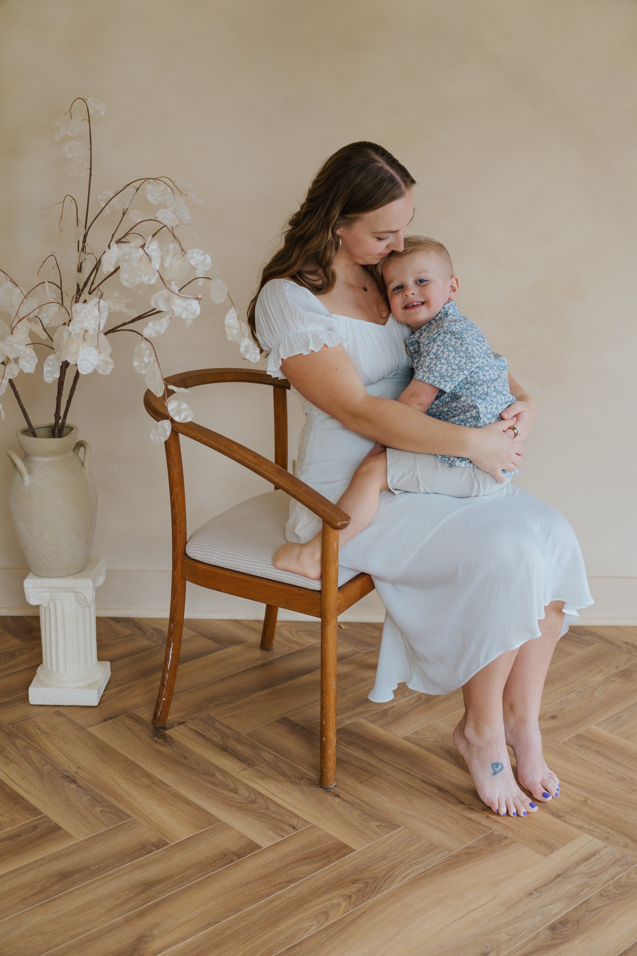 Step into a gentle, light-filled space where you can simply slow down and be together. These sessions are about connection more than perfection. Think snuggles, laughter, quiet closeness, and the beautiful bond you share. Expecting mothers are warmly welcomed as well, honoring the magic of this fleeting season and the sweetness of your growing belly at any size.