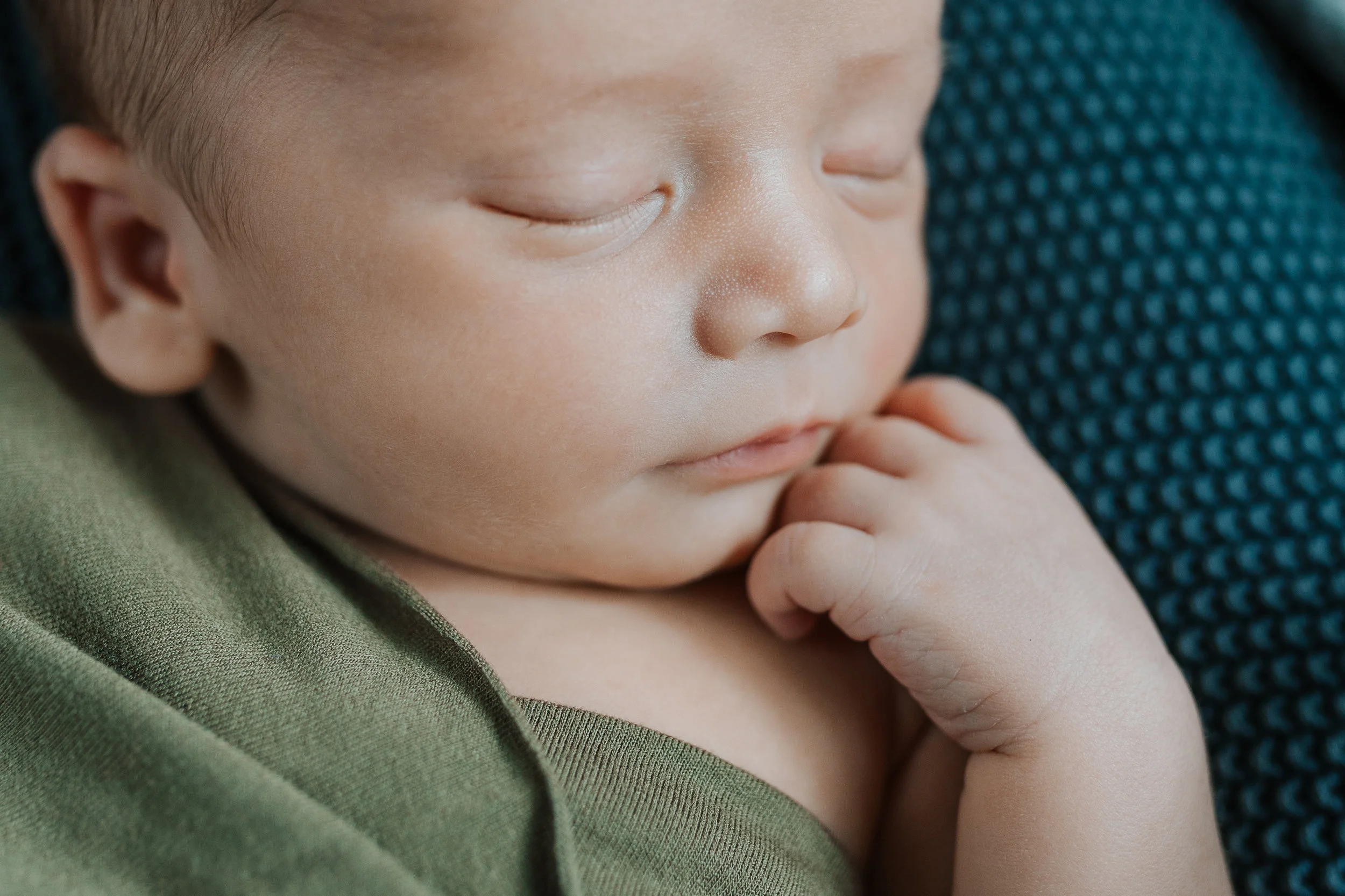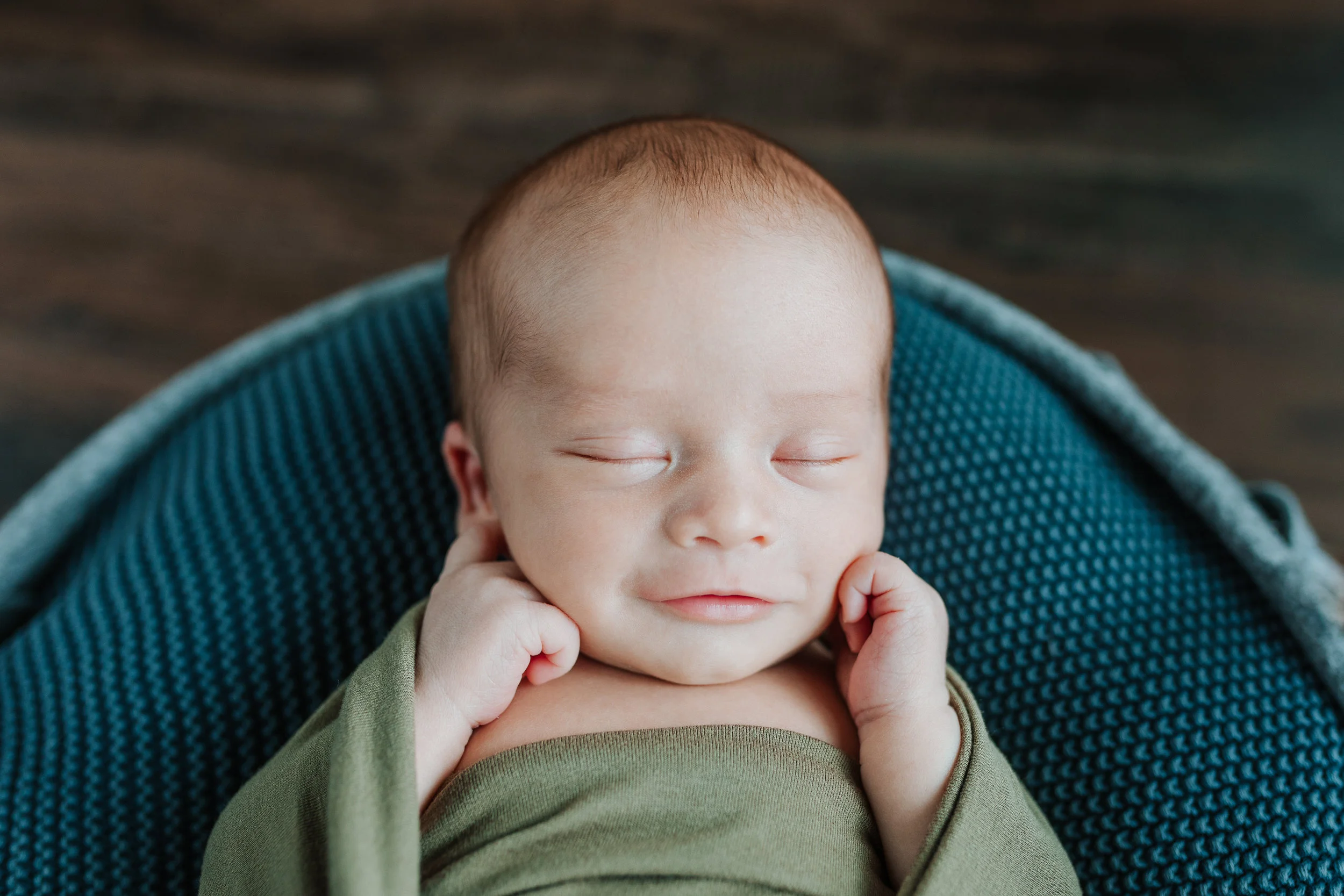 At two weeks old, he was a dream to photograph, and snuggle, of course. He was sleepy and cuddly. I remember wrapping him up for the second set [this is usually when babies start getting fussy] and he was in such a peaceful state that Angie and I kind of leaned in closer to make sure he was breathing still! This little man was in his element and his sweet, little smiles had us exploding from cuteness overload.